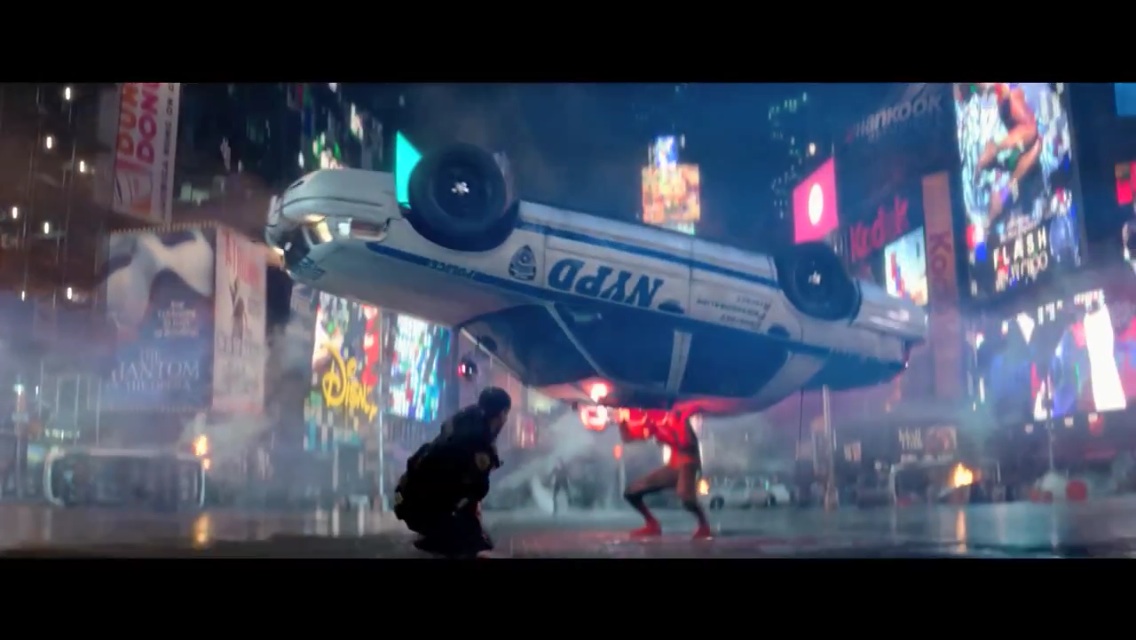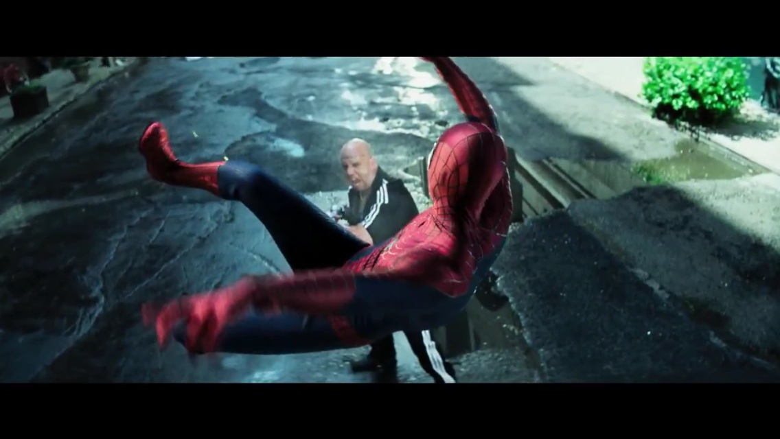 The final shot of the trailer is a long, swooping battle segment between Spider-Man and Electro, who teleports from one location to another as Spidey flees.