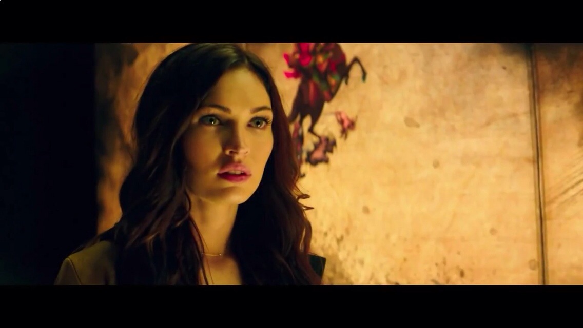 We get our first glimpse of Megan Fox as April O’Neil, not at all giving off the vibe of a reporter.  She’s being lectured by William Fichtner’s character, Eric Sachs, who tells her that “violence and fear have run rampant” and that “people want heroes, Miss O’Neil, but heroes aren’t born, they’re created.”  There’s a quick action sequence in the subway, where some bad guys (probably not the foot clan, seeing how everything else is going in this film) are beat up by the Turtles, who move in the shadows while April tries to film them on her cell phone.