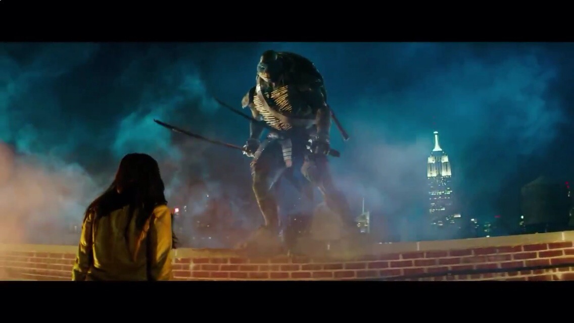 But the money shot/sequence of the trailer features what I assume is the first face-to-face meeting between April and the Turtles.  It’s spread out over the trailer a bit, but I put it all together here.  We first see Leonardo, the group’s leader, looking menacing atop a water tower.
