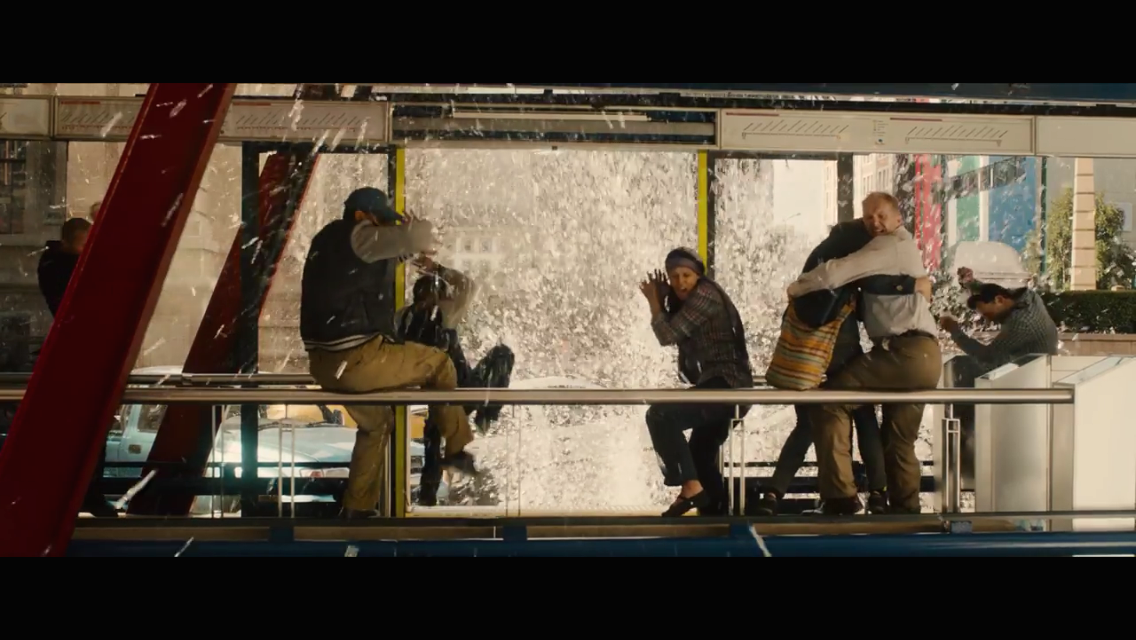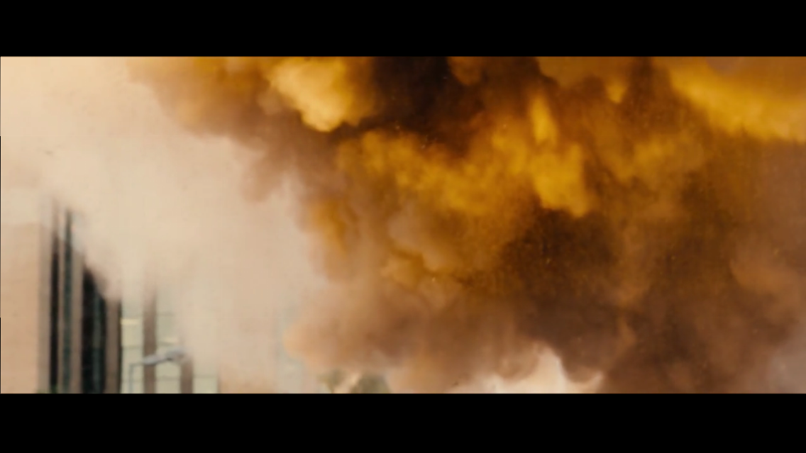 Up to this point, there’s been very little in common with The Avengers. The tone is completely different, there have been no quips, no hero shots, and no action. All that changes, however, when we get a look at an action sequence that was teased with concept art earlier in the year. A giant, Iron Man-esque foot smashes into the street with the Hulk in the background. (This sequence was filmed in Johannesburg, South Africa.) You might notice that between the foot and the Hulk appear to be the police from earlier, so perhaps they were shooting at the Hulk the whole time.
