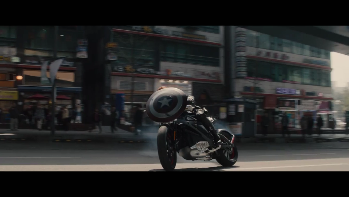 There’s a shot of Cap on his motorcycle in what looks like South Korea (another filming location).