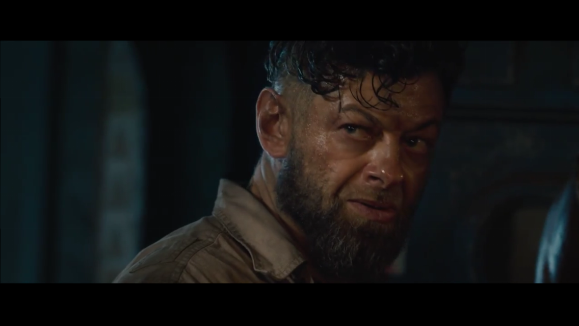 We get a glimpse of Andy Serkis, playing an as yet unknown character with an interesting hairstyle.