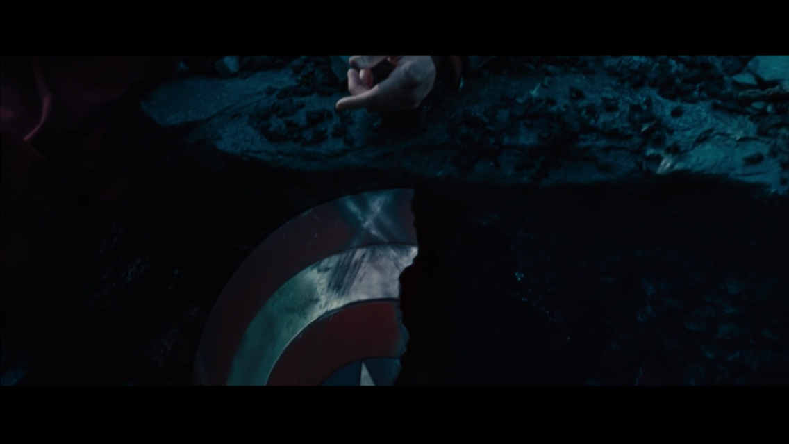The trailer isn’t over though, and as Ultron starts to deliver the final line of the song, we see the terrifying image of a limp hand next to Captain America’s shield, now broken in half.