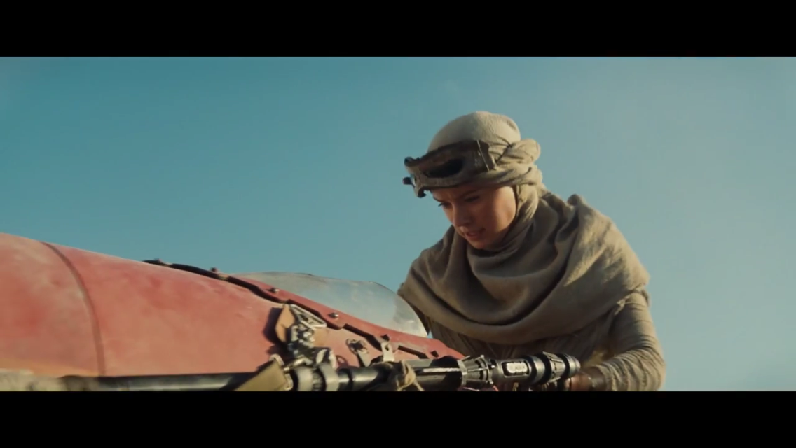 I have vivid memories of seeing the trailer for The Phantom Menace for the first time, and dissolving into a puddle of tears and emotion. Of course, it was 1998, so it was on the big screen instead of on my phone, but the new trailer for Star Wars: Episode VII – The Force Awakens still had the same effect all these years later. You can see the trailer on the big screen this weekend in front of any movie at 30 select theaters across the country, or you can see it right now right here. Check it out below and read on for my thoughts and analysis.