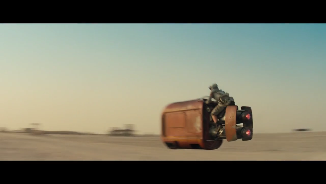 The trailer up to this point has been pretty dark, with some desperate looking people on the run, and things looking generally grim, but this moment feels the most like the Star Wars we know, while simultaneously feeling fresh and new. Even with the prequel trilogy, the effects could never have looked this good, and J. J. Abrams visualizes action and effects in a way that’s completely different from Lucas. At the same time, it feels right at home with the series, matching the style and the feel of the familiar. It’s the perfect balance of old and new, and it’s blown any thought of other movies completely from my mind.