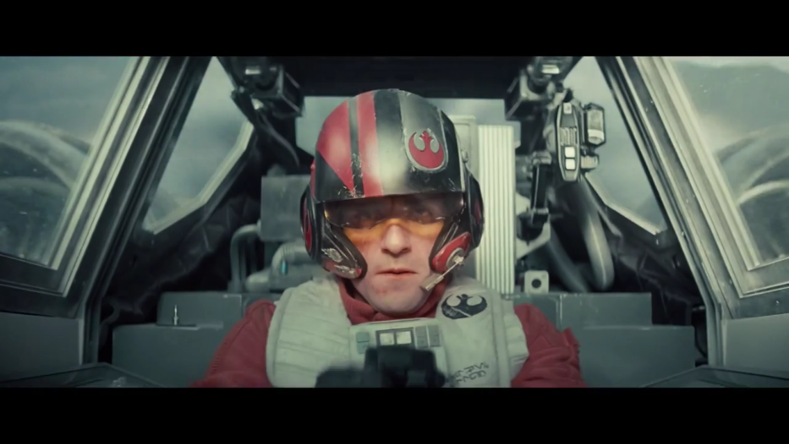 This is another series newcomer, Oscar Issac, in the cockpit of an X-Wing. He has the rebel alliance symbol on his helmet and his vest. Not much has changed since in the look of X-Wings and their pilots since the original trilogy, but there are some changes. There have been some design changes to the flightsuit, and even more to the helmet. It’s supposedly been decades in the Star Wars universe since the events of Return of the Jedi, but not too much has changed. I will say that the cockpit looks a little cleaner and more modern than the ones in A New Hope. There aren’t hoses everywhere, and the tactical display on Oscar’s left is a little more streamlined. Still, stormtroopers and X-Wings are still around in force.