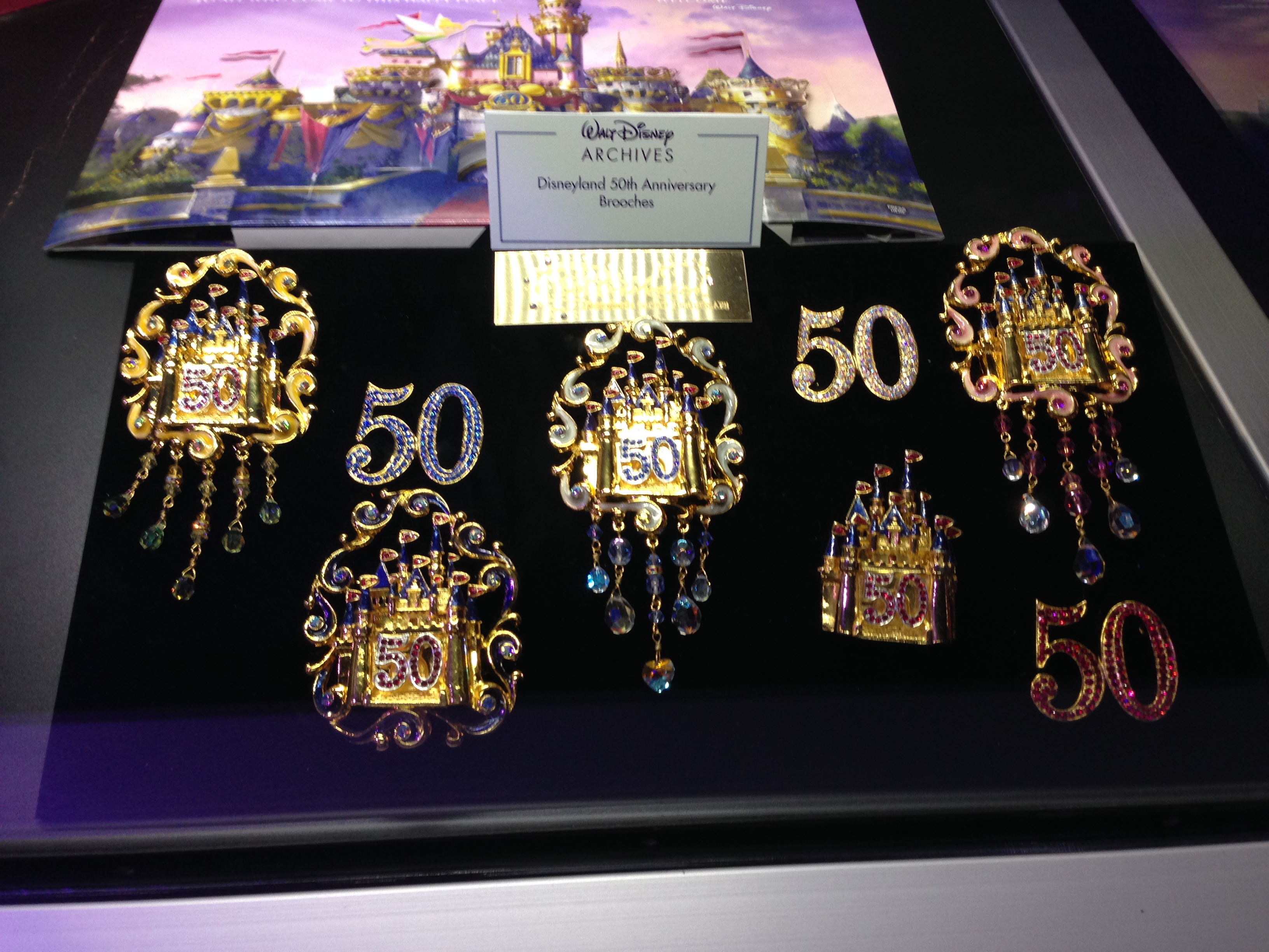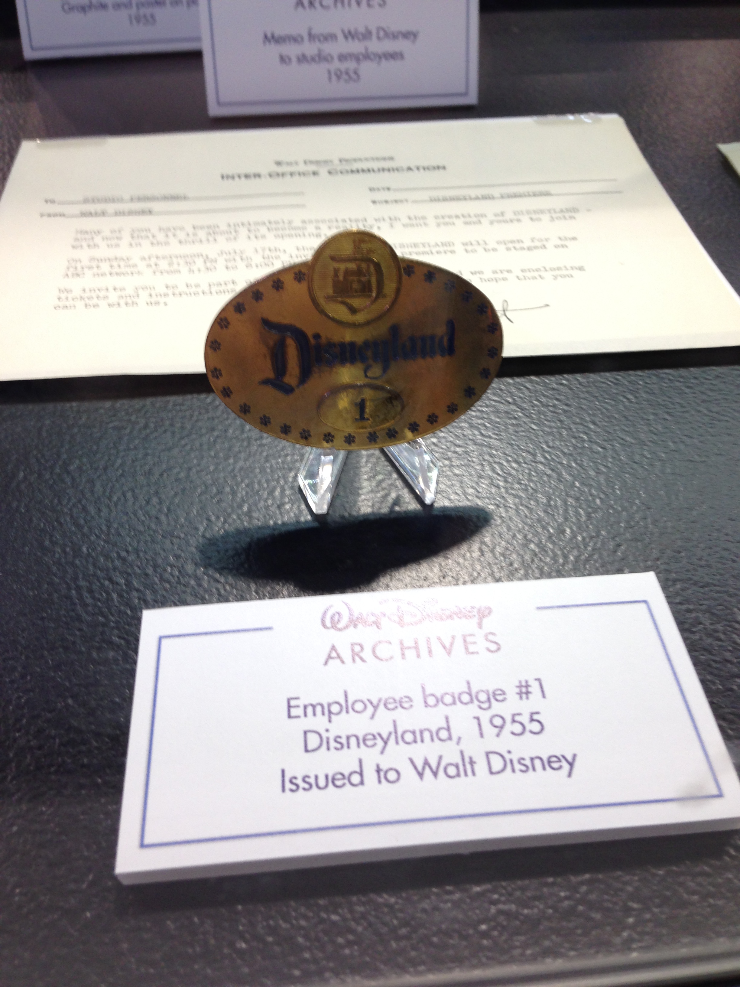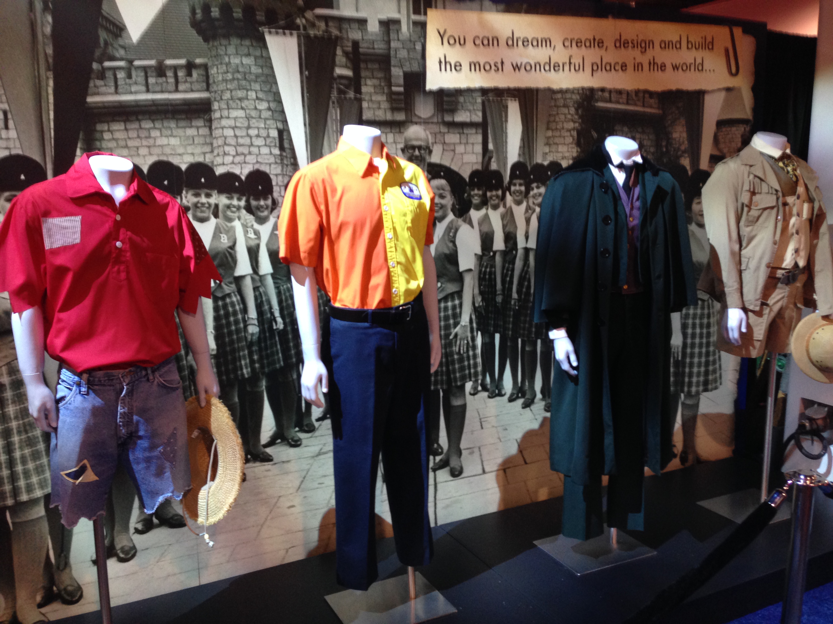 The Exhibit, presented by the Walt Disney Archives and centered around Disneyland’s 60th anniversary, was full of historical artifacts, interesting stories, pre-construction artwork, ride vehicles, costumes, props, signs and more. I’m going to let the pictures below speak for themselves, but I’ll point out a few of my highlights first. It’s very poignant to see the very first Disneyland ticket ever sold on display, particularly tucked away so innoccuously in a corner of the pavilion. It was really neat to see a selection of ride vehicles side by side and out of context; it really makes you take another look at something you’re so used to being just a part of a larger ride. I geeked out over the Star Tours sign and Captain Rex animatronic. They also had a virtual recreation of the Adventure Thru Inner Space ride which was very popular. Everything had very detailed histories and descriptions, and I completely lost track of how long I was in there, despite it not being as large as you might suspect.