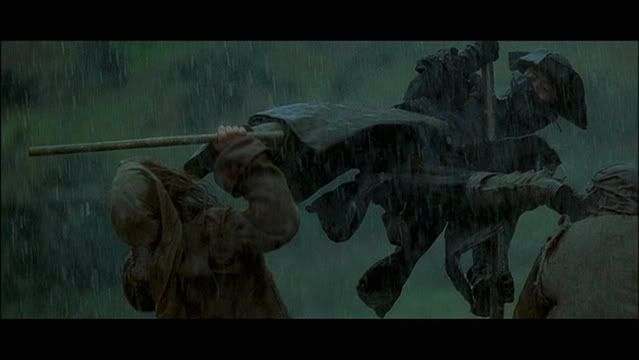 There are a few moments in Brotherhood of the Wolf which I would think, even out of context, must have come from a French film, although the specifics as to why are a bit of a mystery. One such instance is one of the most unique scene transitions I’ve ever seen, where the camera pans up the nude body of Monica Bellucci, and dissolves to footage of the snow-covered countryside, with her breast becoming a mountain and her arm turning into a ridge. It’s a clever bit of cinematic trickery, but it’s stunning in its simplicity and simply the sort of thing you’d never see in an American film. The visual techniques used by director Christophe Gans, particularly in the fight scenes, are equally foreign to American audiences, using kung fu-style martial arts but filmed in a way that maximizes the beauty of the movements, often slipping between slow motion and full speed, lingering on the rain water pouring off of a staff but then taking a moment for a character to make a comedic face. The action feels more like a ballet than what we’re used to in the US, but it still has a grittiness to it as well. And then there’s the somewhat odd spiritual aspect of the film, with a looming crucifix hanging over town juxtaposed with drug-induced visions and Mani’s unique connection to nature. Add in a healthy dosage of sex that would make American studios cringe, and it all combines such that the film constantly keeps you on your toes.