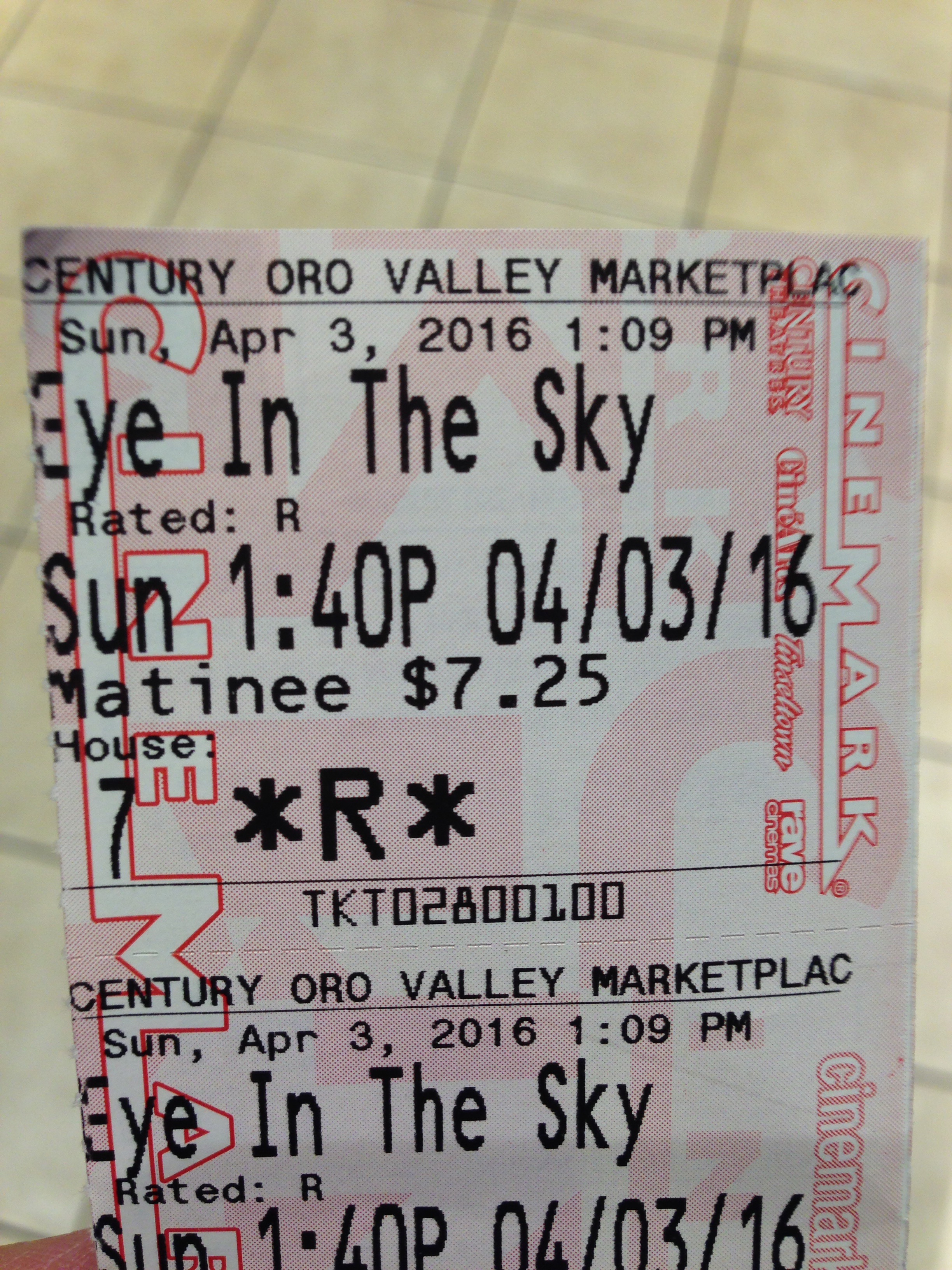 I should have known. When a lady down in the front of my full theater pulled out her cell phone during the pre-show warning to turn off your cell phone in order to scroll through an email full of pictures with her husband, zooming in on each one and discussing it, and continued doing this into Eye in the Sky’s opening credits until I yelled for her to put her phone away, I should have known things were going to go badly. We’ve all had movies ruined by rude audience members, people who won’t put away their cell phones (or don’t know how to put them on silent), never stop talking, eat loud or foul-smelling food, kick your seat, etc. But far more rare is an experience where a movie is ruined because of the audience’s reaction to it, either because they simply did not get the movie’s intentions or because you had a very different emotional response than the people surrounding you in the dark. I endured just such an event while seeing Eye in the Sky, and it not only made it impossible to fully enjoy the film from that moment on but it also destroyed a good bit of my faith in humanity. I was disgusted.