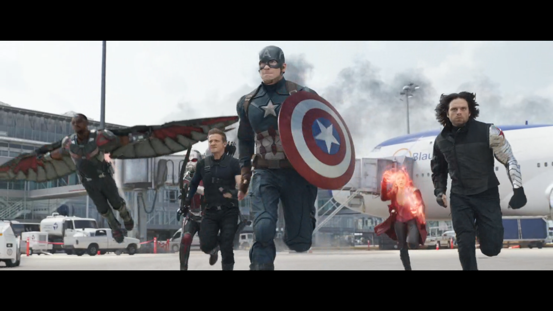 As I’m sure you’ve seen by now, Disney/Marvel debuted a new trailer for Captain America: Civil War yesterday in conjunction with advance tickets going on sale. The first trailer was an atmospheric and moody one, giving us quick peeks at a variety of what’s happening in the Marvel Cinematic Universe, with an emphasis on the Steve Rogers/Tony Stark/Bucky Barnes triangle. We got our first look at Black Panther, as well as hints at the ultimate showdown between Captain America and Iron Man. This latest trailer expands on the first one, repeating a few moments but going bigger. It’s much more action-packed, it gives us a larger idea of the film’s plot without too many specifics, and we get to see many more of our favorite heroes. And to top it all off, this trailer also gives us a first look at a new character, although one with whom most viewers are probably familiar. So take a look at the trailer below and then read on for my thoughts and screencaps. Then be sure to let me know what you think in the comments!