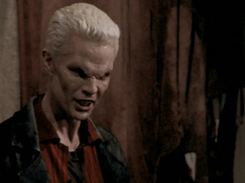 Spike: Oh, sod the spell. Your friends are at the factory… I’m really glad I came here, you know? I’ve been all wrongheaded about this. Weeping, crawling, blaming everybody else. I want Dru back, I’ve just gotta be the man I was, the man she loved. I’m gonna do what I shoulda done in the first place: I’ll find her, wherever she is, tie her up, torture her until she likes me again… Love’s a funny thing.